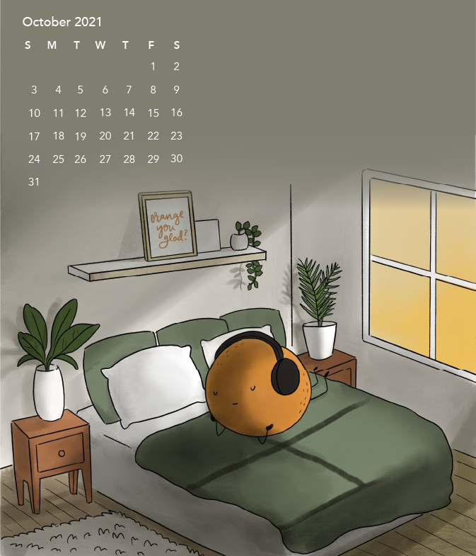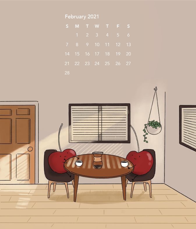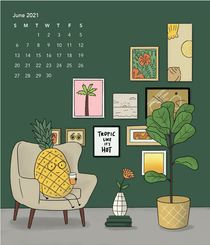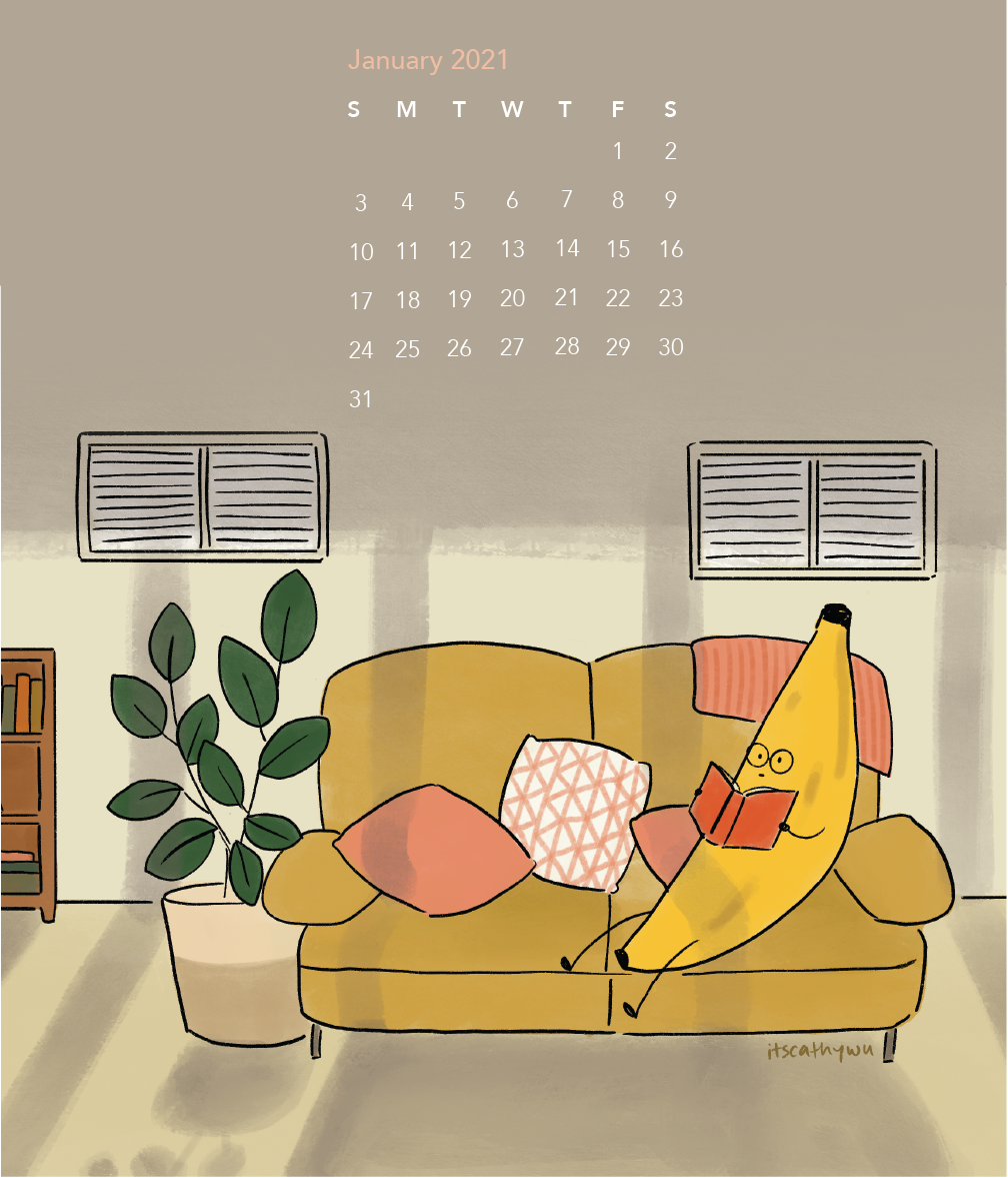 A personal project of personified fruits in various home environments, compiled into a 2021 calendar.