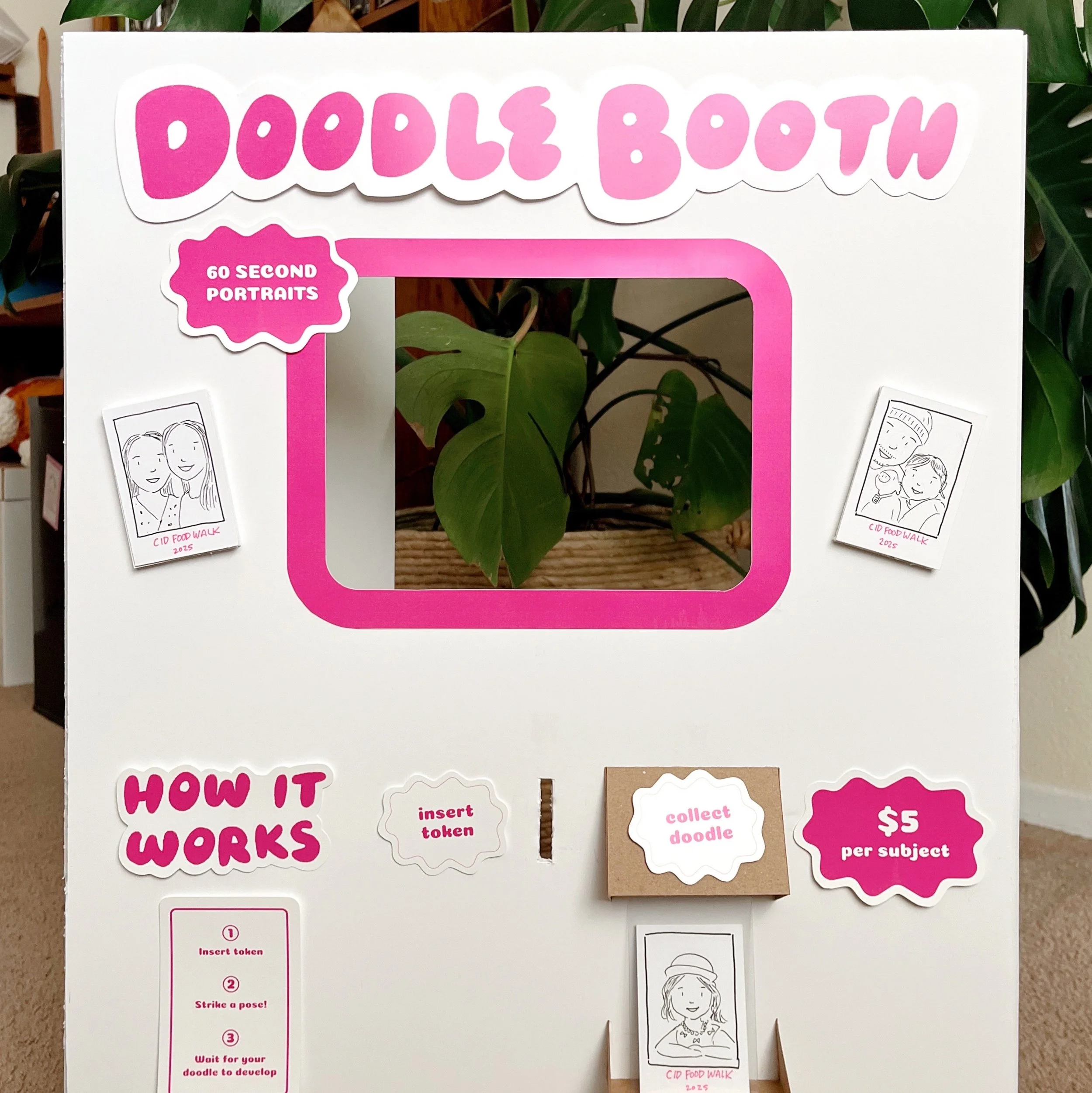 The Doodle Booth is a fun and interactive live art experience for any event! Guests go through the photo booth experience of inserting tokens, striking a pose, and waiting for their doodled portrait to develop, all in just a couple of minutes. Text on drawings and tokens can also be customized.